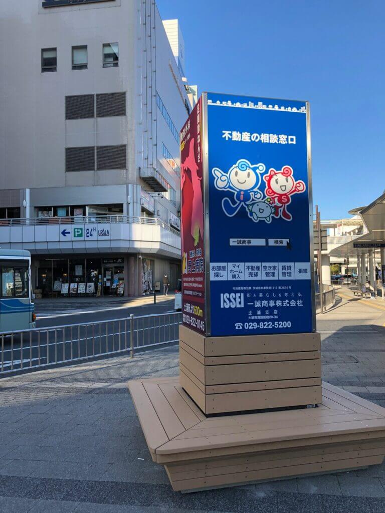 土浦市の土浦駅前西口広場バスロータリー付近に新しく看板を設置しました。