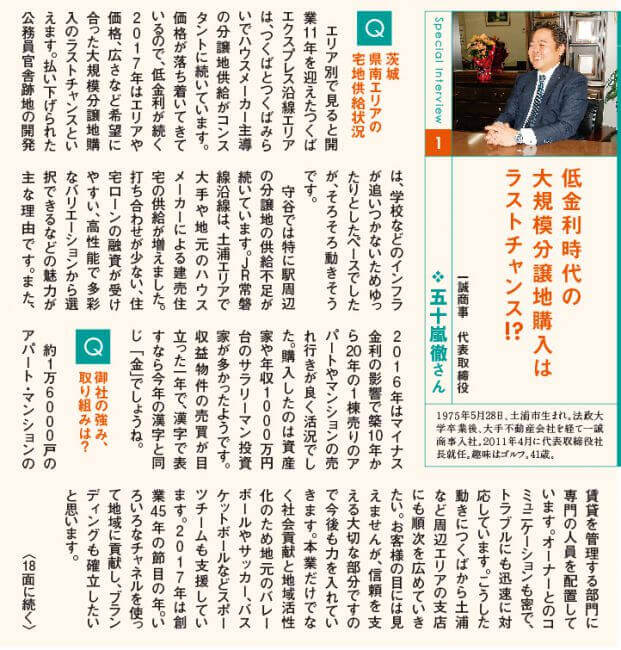 2016年12月31日(土)常陽リビングに、弊社代表・五十嵐のインタビューが掲載されました。