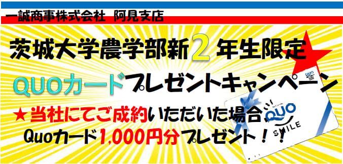 阿見支店では、茨城大学農学部新2年生向けのキャンペーンを実施しています。