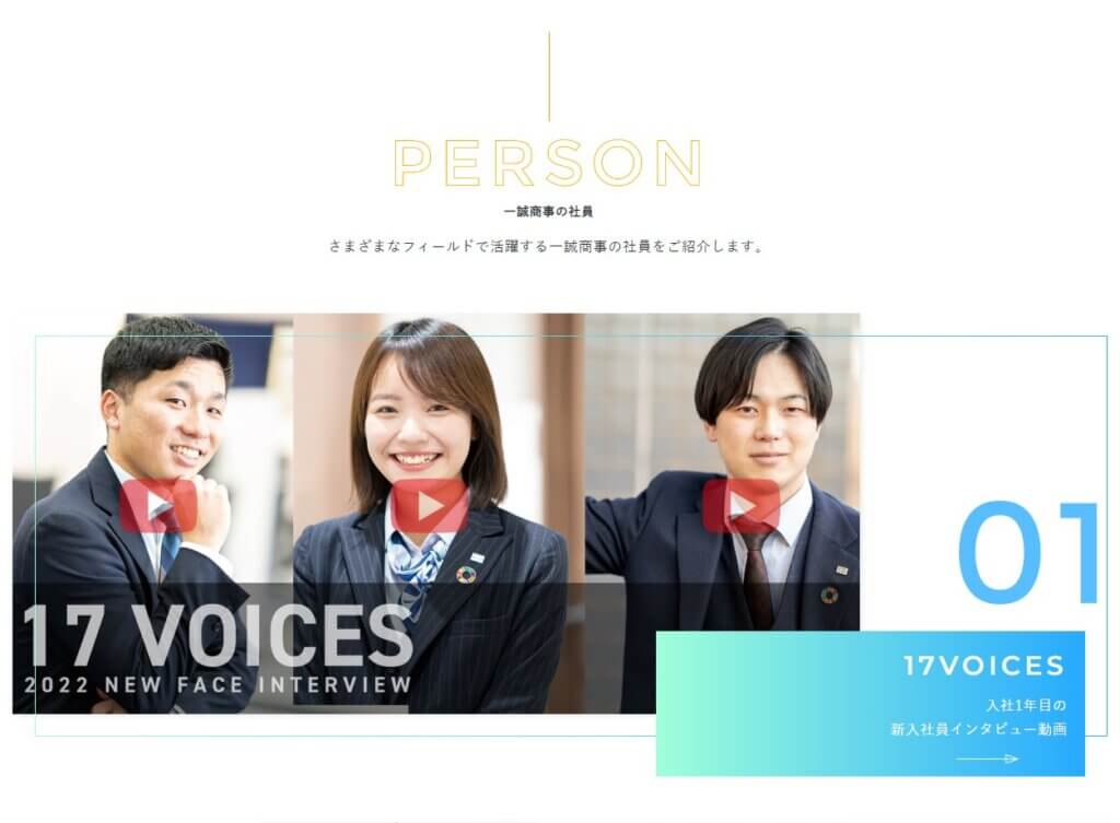 今回のリニューアルでは、入社一年目の新入社員17名のインタビュー動画を掲載しております。
