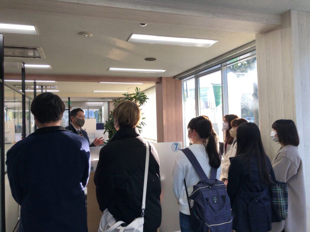 これは茨城大学が企画したもので、県内の様々な企業を訪問し、会社独自の雰囲気や規模・理念を知り、キャリア形成について考えることを通じて、学生の就職活動を支援するものです。