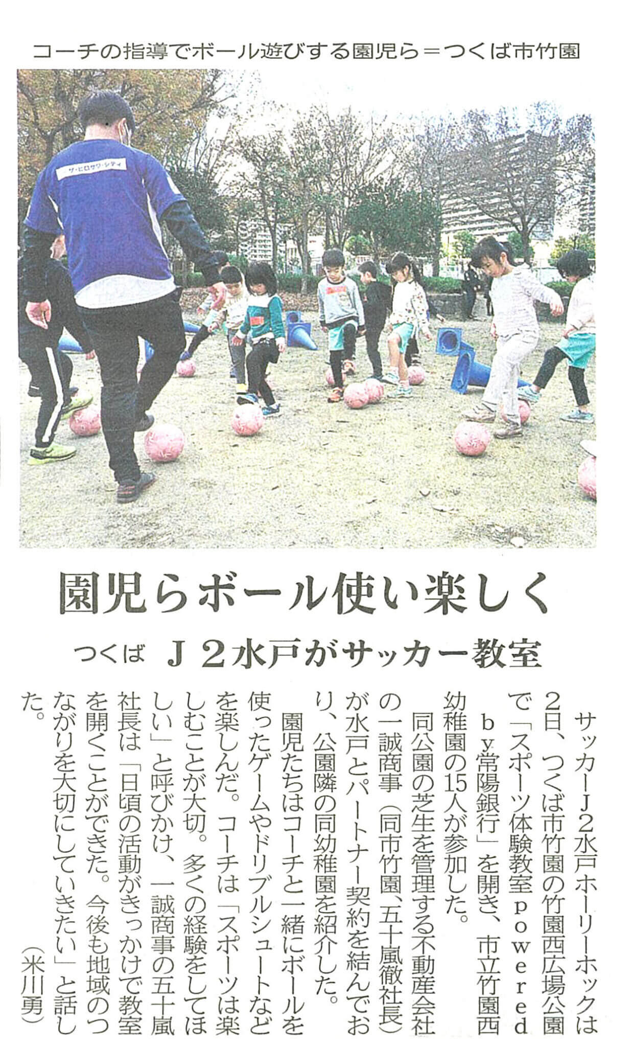 一誠商事が繋ぐ地域貢献としてスポーツ教室を開催し、茨城新聞に代表五十嵐のコメントが掲載されました。