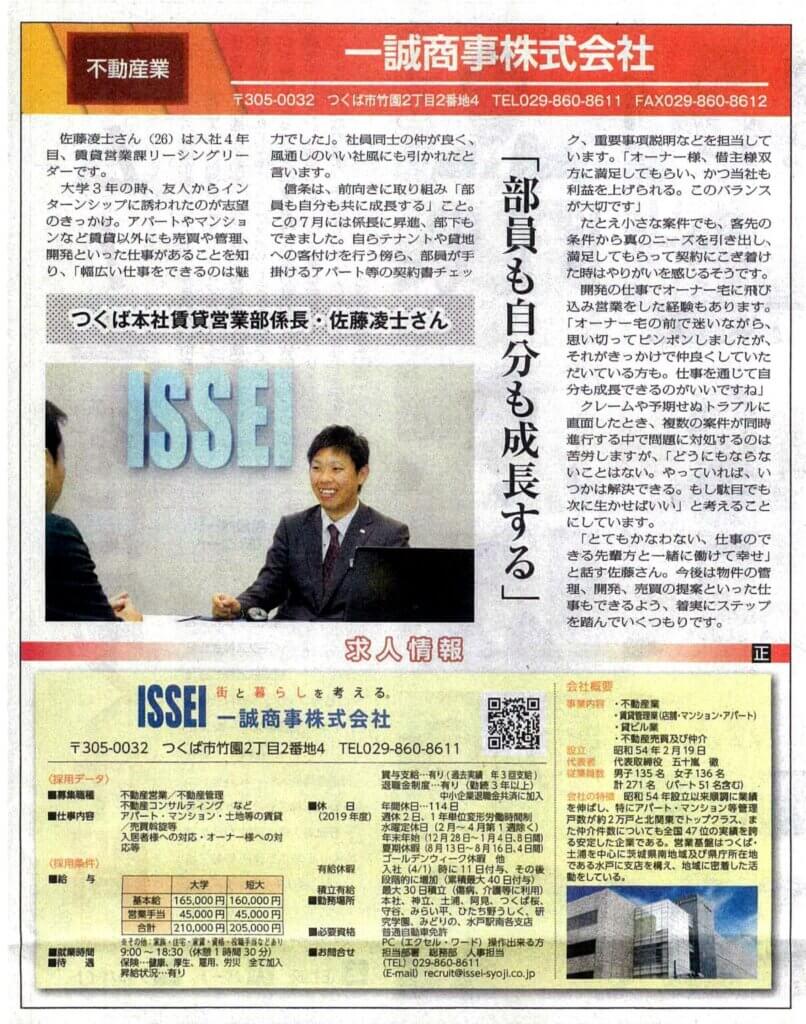11月28日(木)発行の茨城新聞「Workerたちが語る“シゴト論”」に当社の社員インタビューが掲載されました。