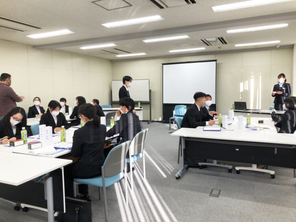 人事課による会社や部署の紹介、2.3年目社員への質問タイム、グループワークなどを行いました。