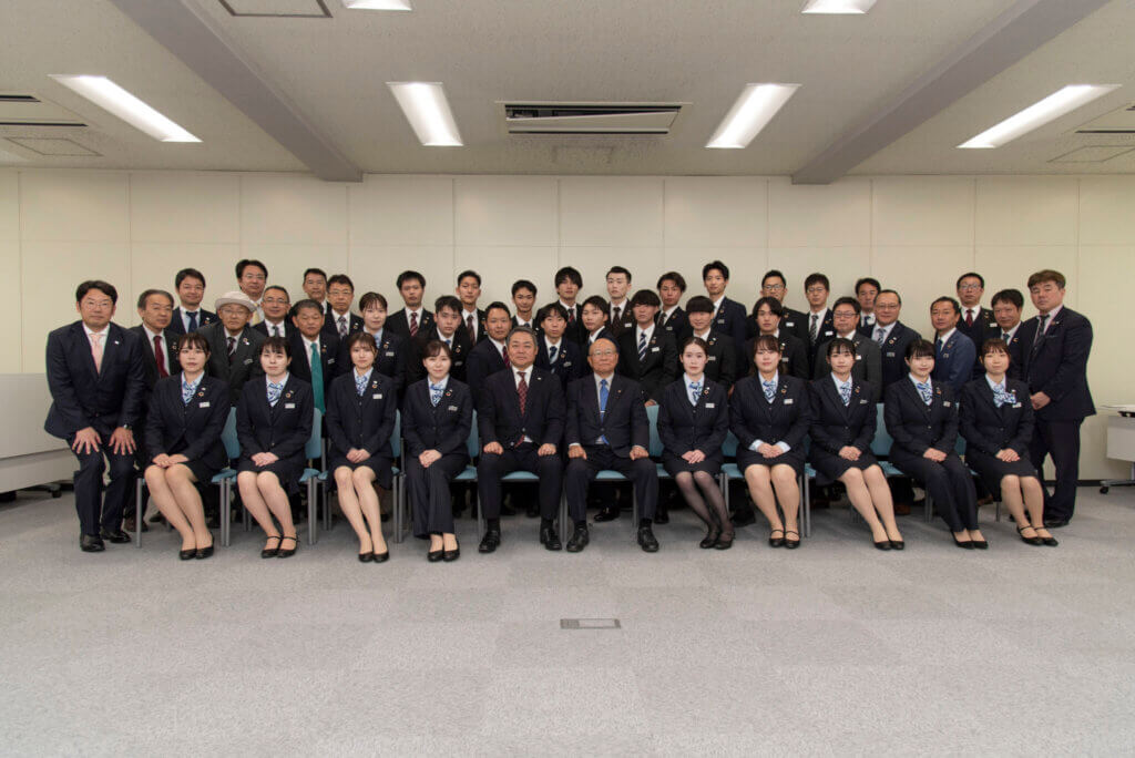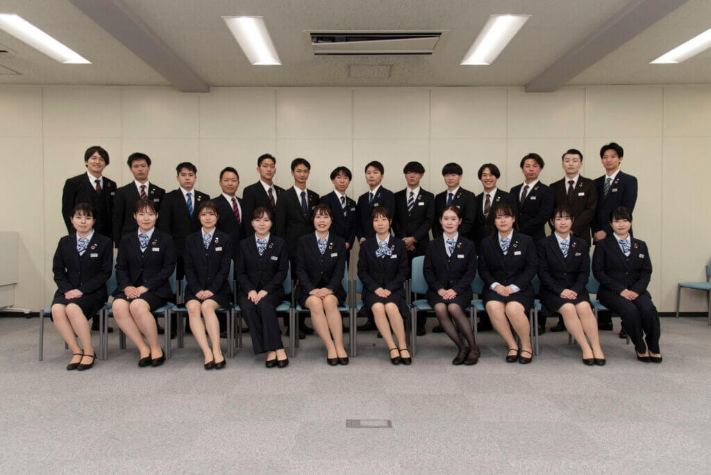 25名の新入社員は、一ヶ月間の集合研修・二ヶ月間のジョブローテーションを実施後、各部署へ配属されます。