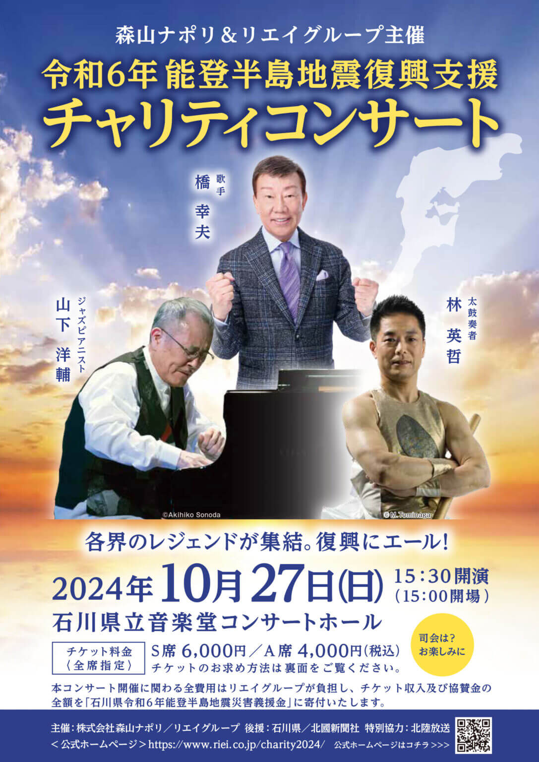 2024年10月27日(日)、石川県立音楽堂において、令和6年能登半島地震復興支援 チャリティコンサートが開催されます。