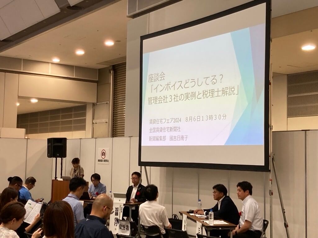 2024年8月6日(火)・7日(水)に、東京ビッグサイトで全国賃貸住宅新聞社主催『賃貸住宅フェア2024in東京』が開催され、不動産会社向けセミナー『インボイスどうしてる?管理会社3社の実例と税理士解説』で、弊社常務取締役の加藤信行が登壇いたしました。
