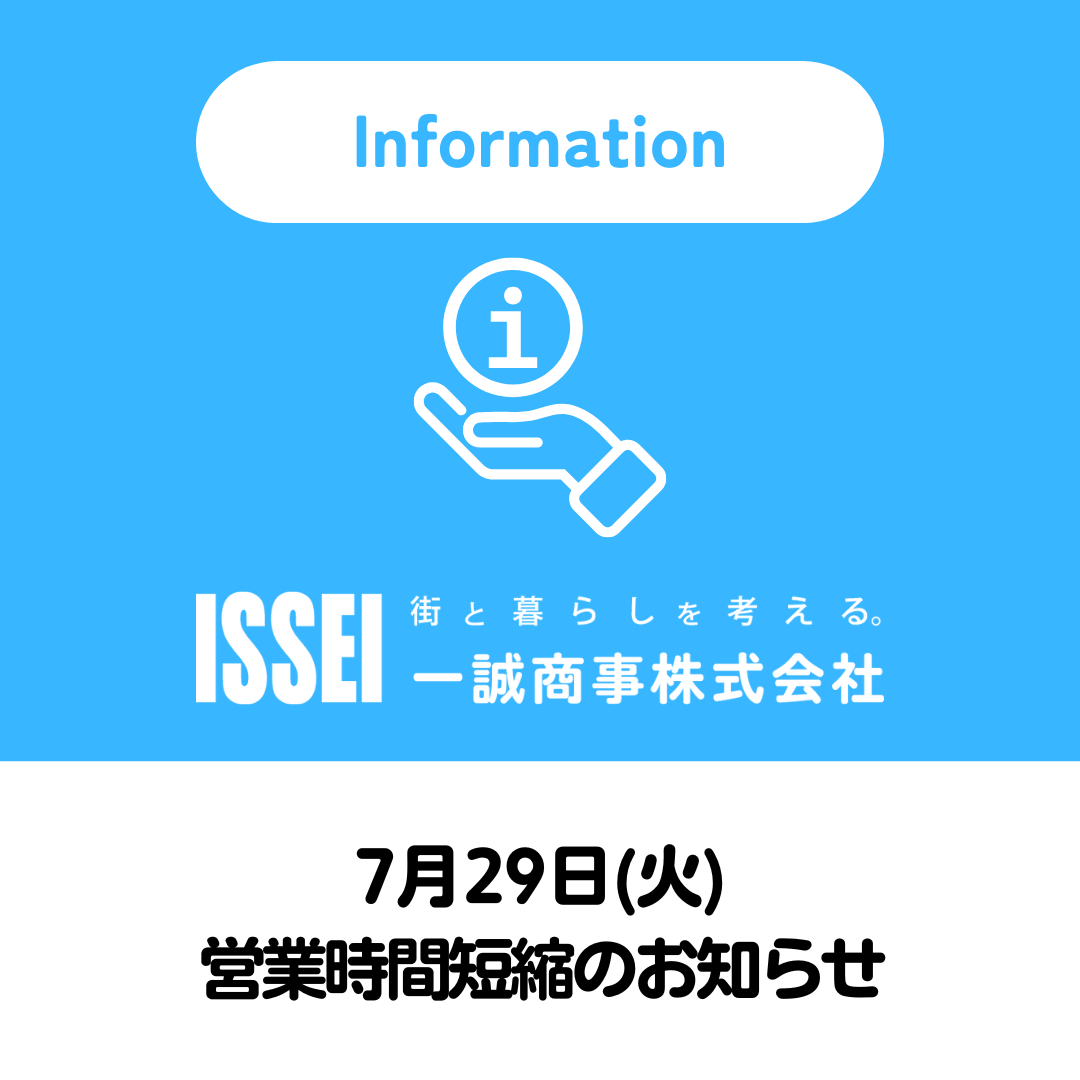 [ 7月29日(火) 一誠商事各店の閉店時間 ]