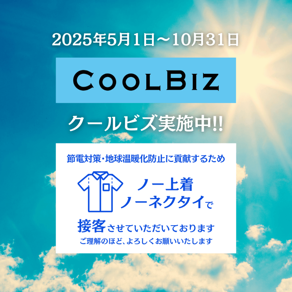 弊社では、2025年5月1日(木)~2025年10月31日(金)の間、環境への取り組みの一環としてクールビズを実施いたします。