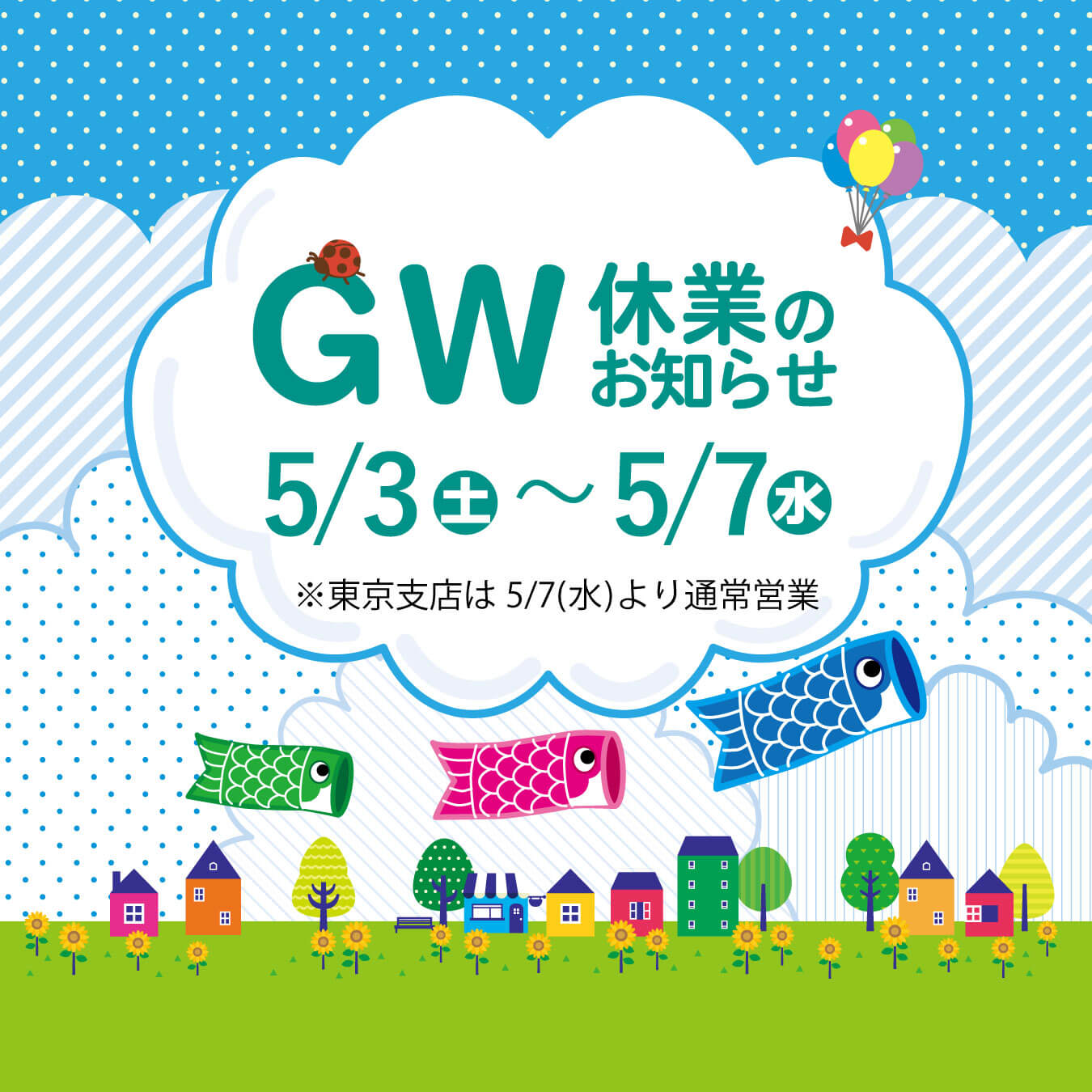 2025年5月3日(土)~2025年5月7日(水)まで、ゴールデンウィーク休暇のため休業とさせて頂きます。