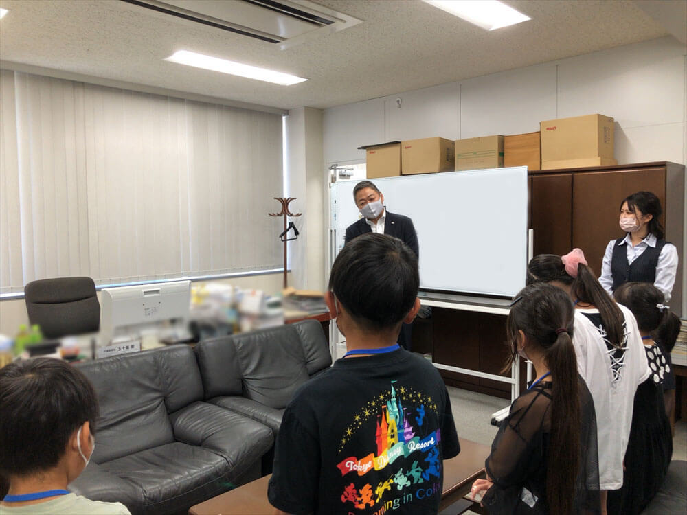 次に社長室へ行きました。社長が小学生のころ得意だった教科や、休みの日は何をしているかなど、子どもたちが気になる質問をたくさんすることができました。