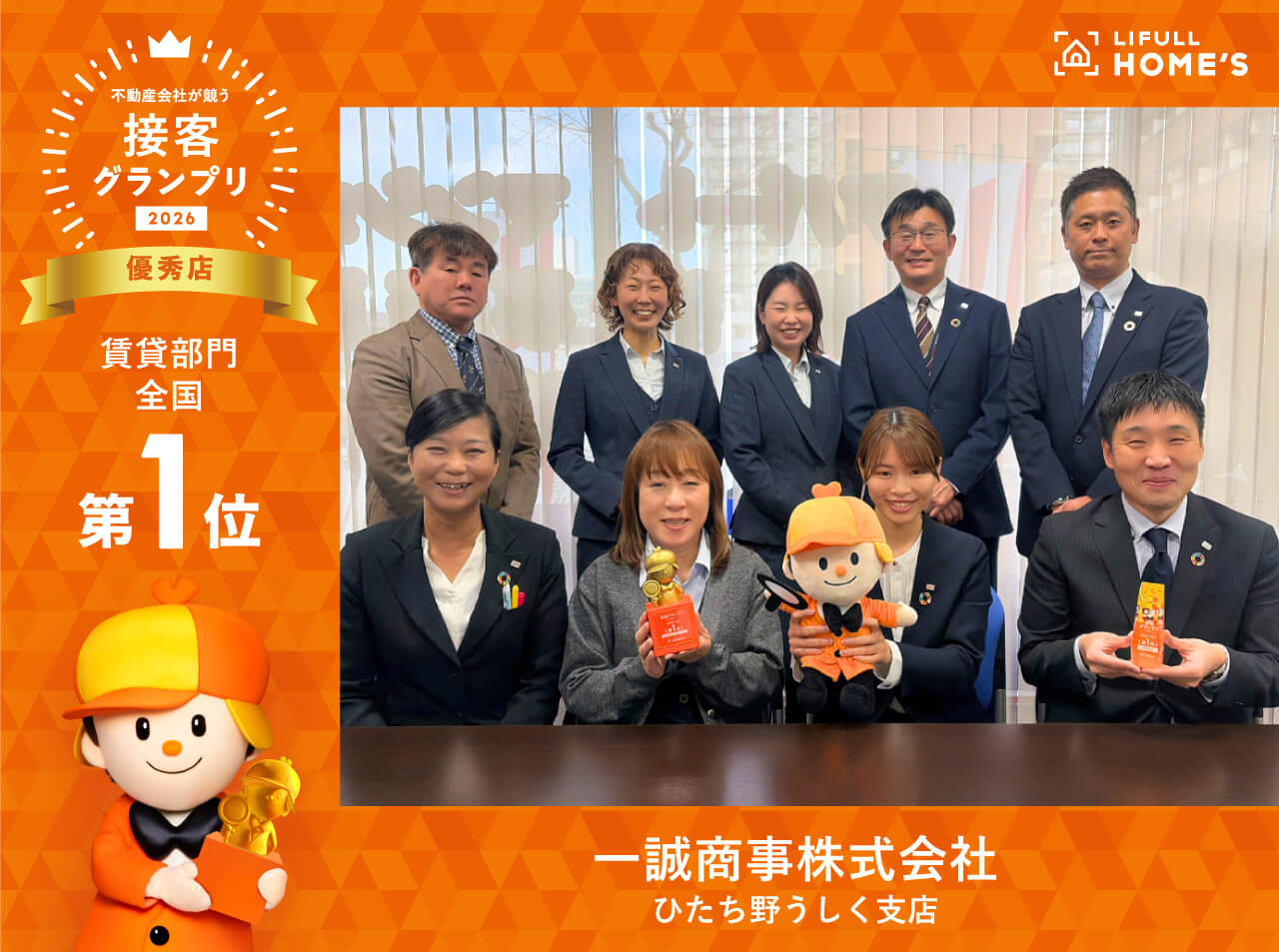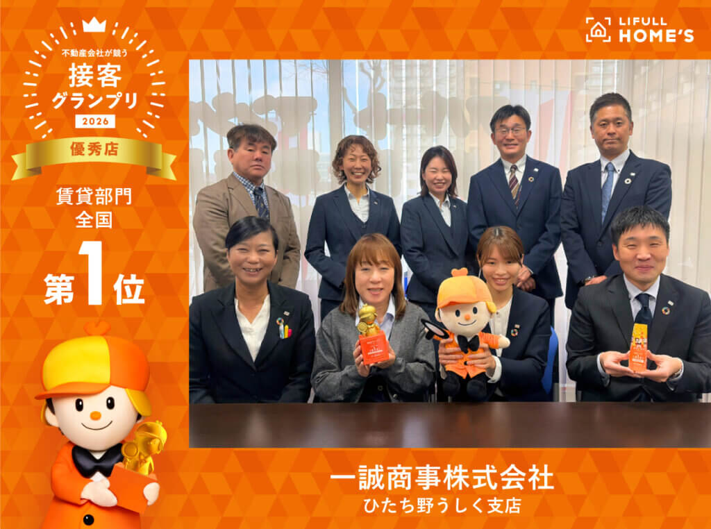 不動産・住宅情報サイト「LIFULL HOME’S」が実施する接客グランプリ2026[賃貸部門]において、弊社ひたち野うしく支店が全国第1位に輝きました。