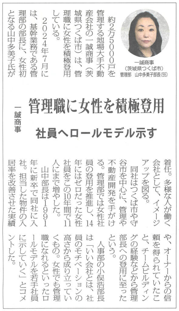 弊社の女性管理職登用について、下記媒体に記事が掲載されました。