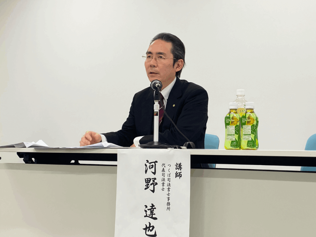 今回のセミナーでは、”実務の現場から考える「終活・相続の準備とその手続」” をテーマに、つくば司法書士事務所 代表司法書士・河野 達也先生よりご講演をいただきました。