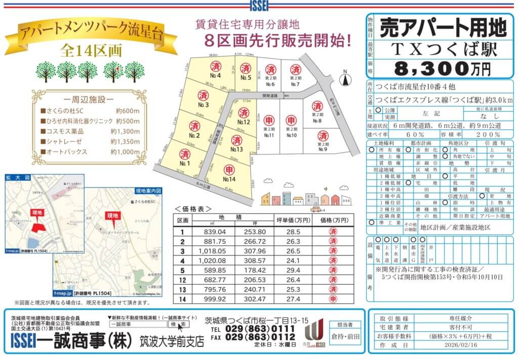 【賃貸住宅専用分譲地】アパートメンツパーク流星台