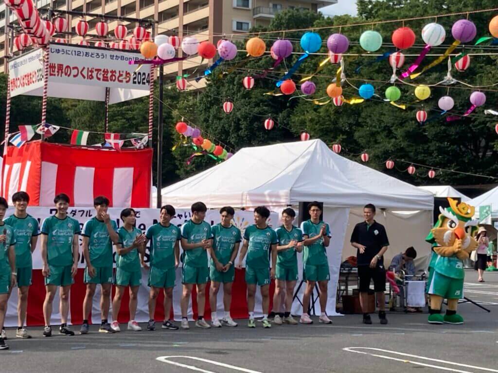 『第12回世界のつくばで盆踊り2024』では、当社がスポンサーとなっている、つくばユナイテッドサンガイアの選手紹介や挨拶も行われ、盛り上がりをみせていました!