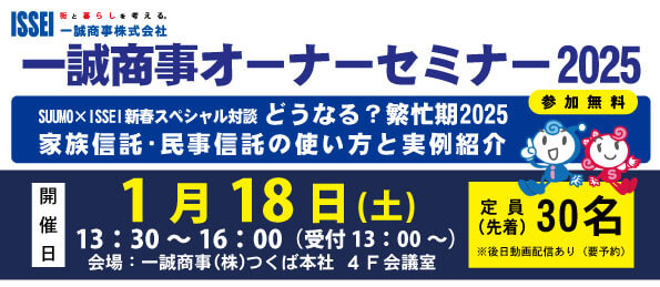 来場参加(定員30名)&後日動画配信にて、一誠商事オーナーセミナー2025を開催いたします。