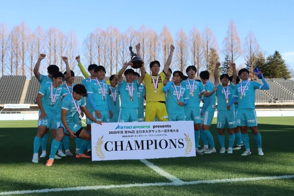 2025年12月6日から12月27日にかけて開催された第74回全日本大学サッカー選手権大会(インカレ)において、弊社がスポンサーを務める『筑波大学蹴球部』が見事優勝いたしました。